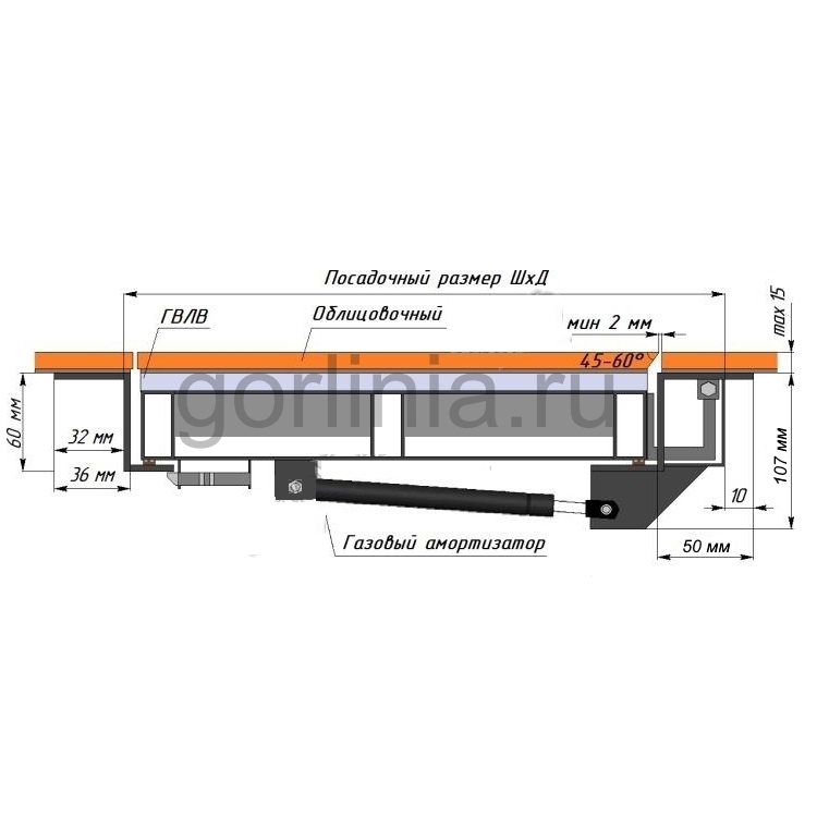 Легкое открывание на петлях со вспомогательными амортизаторами-подъемниками.