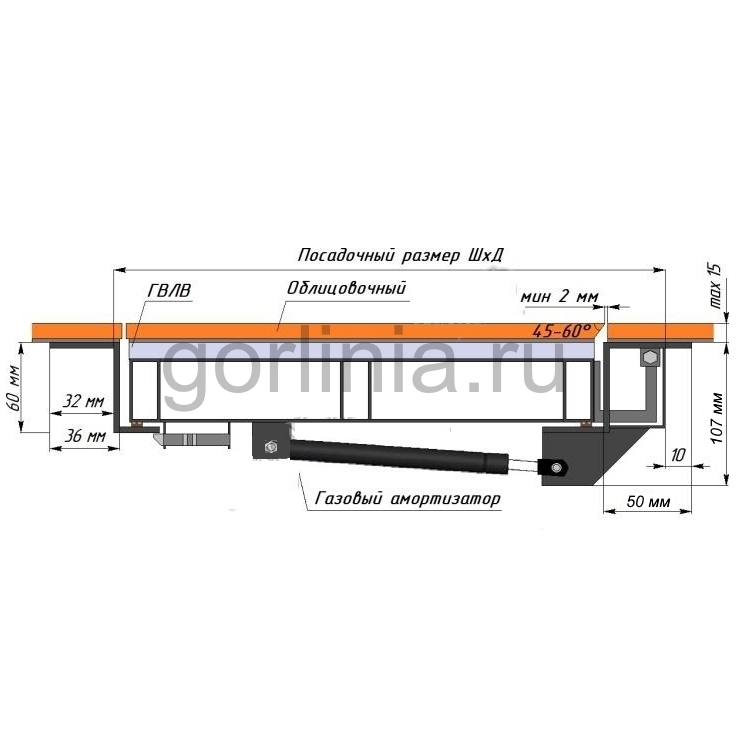 Облегченная модель без щелей в полу с уведенными за ось открывания петлями. Легкая ходовая часть и удобная установка. Просторный размер в свету 750*600 при поднятой крышке для удобного спуска по лестнице в подвальное помещение. При формировании посадочного отверстия обратите внимание, что защитные кожухи шарниров выходят за посадочную отметку по плечевой стороне (см фото).