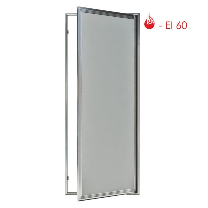 Конструктивные особенности, влияющие на огнестойкость: второй слой гипсокартона с проложенной внутри минеральной плитой. Огнеупорный уплотнитель терморасширяющийся в раме с порогом.