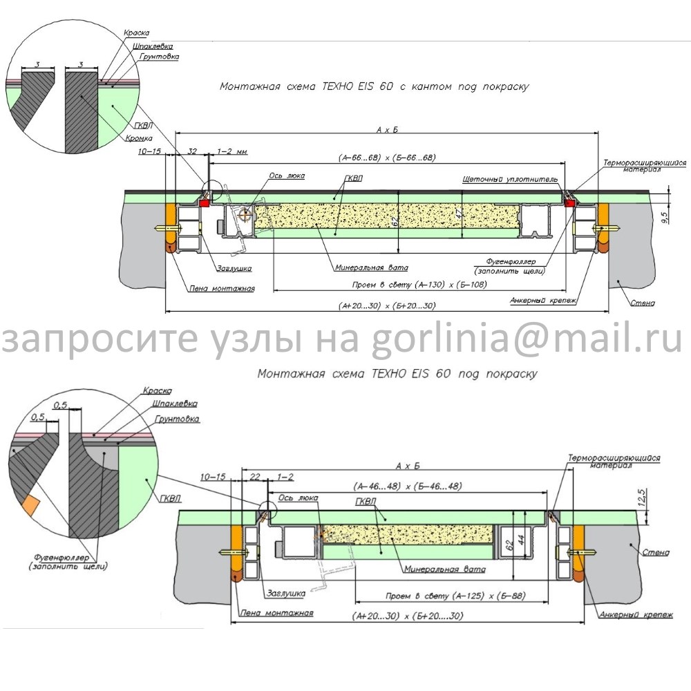 Чистовой проем и размер створки зависят от защитного канта по притвору в профиле люка.